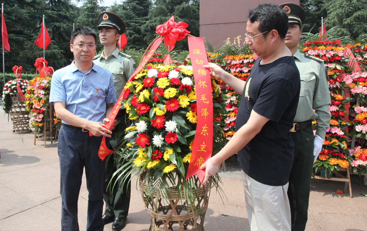 党员代表们在韶山毛主席广场瞻仰了主席铜像,在毛主席铜像前列队肃立,向主席铜像三鞠躬,并以武警仪式向主席铜像敬献花篮,表达对伟大领袖毛主席的无限敬意和深切缅怀。