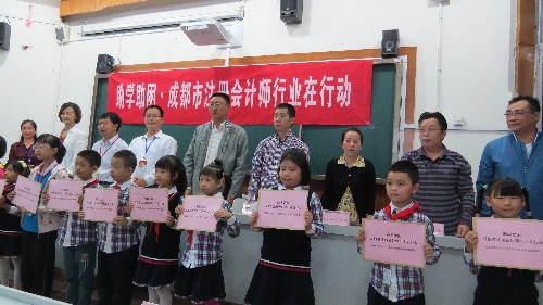 9月17日,大信四川分所及其他两个事务所代表在成都市注册会计师行业党委党组书记夏鉴及成都市财政局雷大力处长的率领下,与成都市慈善总会工作人员、成都市会计师行业党委工作人员等一行来到了助困对口学校-蒲江县下关小学中共党员开展“助学助困 成都市注册会计师行业在行动”活动。
