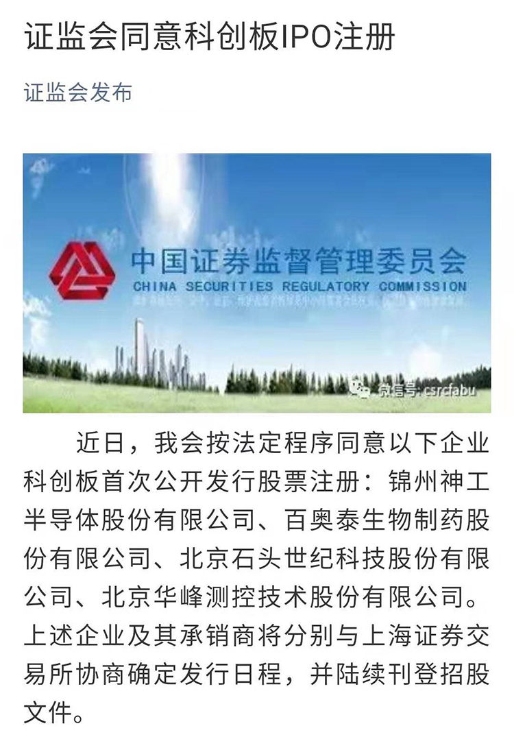 1月14日,证监会发布信息,同意4家企业科创板首次公开发行股票注册。在这4家企业中,有2家为大信会计师事务所客户,分别为锦州神工半导体股份有限公司和北京华峰测控技术股份有限公司。