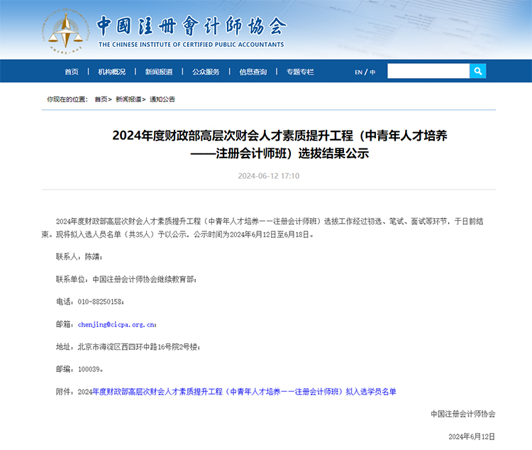 为贯彻落实新时代人才强国战略,深化注册会计师行业人才培养战略,加强行业高层次人才培养力度,根据《会计行业中长期人才发展规划(2021-2025年)》、《注册会计师行业发展规划(2021-2025年)》、《关于加强新时代注册会计师行业人才工作的指导意见》精神和《财政部高层次财会人才素质提升工程实施方案》、《财政部高层次财会人才素质提升工程(中青年人才培养——注册会计师班)实施方案》的具体要求,中国注册会计师协会(以下简称中注协)组织开展2024年度财政部高层次财会人才素质提升工程(中青年人才培养——注册会计师班)选拔工作。