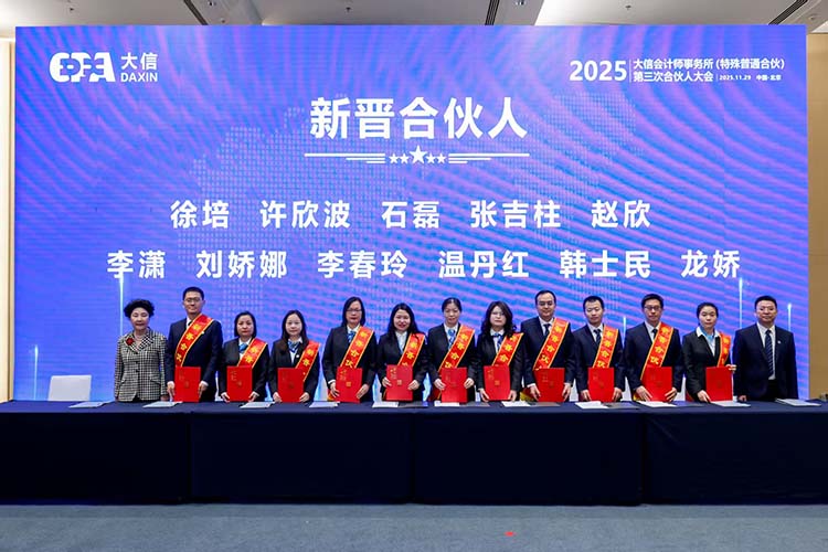 2025年11月29日上午,大信会计师事务所(特殊普通合伙)2025年第三次合伙人大会在国家会议中心顺利召开。大信全体合伙人及总部职能部门负责人等参加会议。
