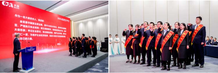 随后,党委书记胡咏华作为领誓人,带领全体新晋合伙人庄严宣誓。铿锵誓言凝聚着责任与担当,彰显了新晋合伙人对职业使命的敬畏之心与对大信未来的坚定承诺。