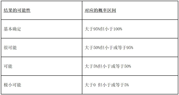 “极可能”是2017年新修订的企业会计准则引入的新术语,但新修订相关准则并未给出“极可能”的定义及量化标准。《国际财务报告准则》术语表对“极可能”的解释为“比很可能的可能性要大得多”。