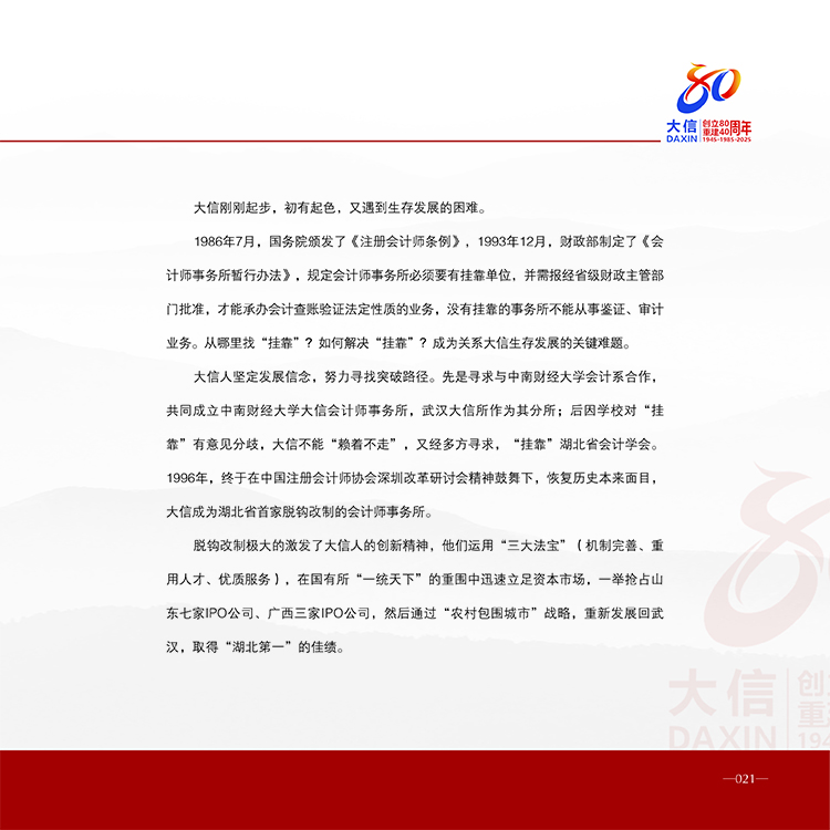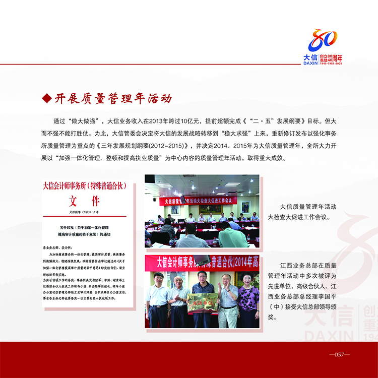 大信创立80周年重建40周年纪念册